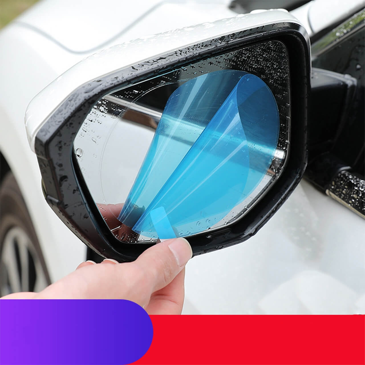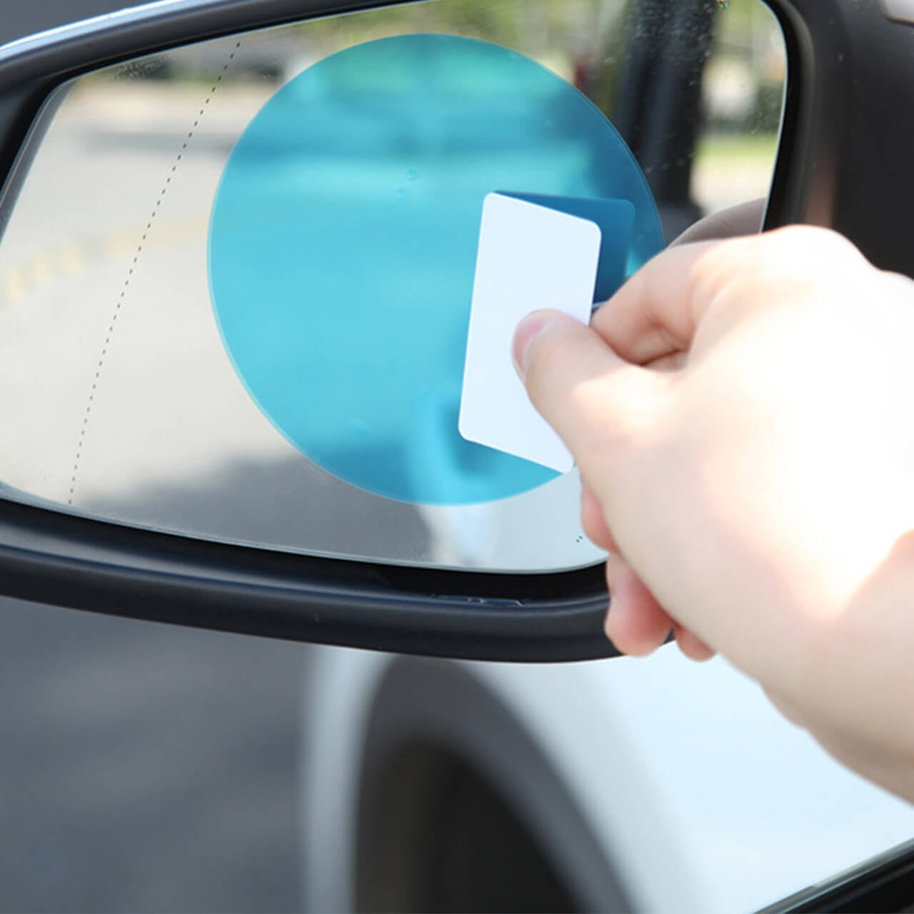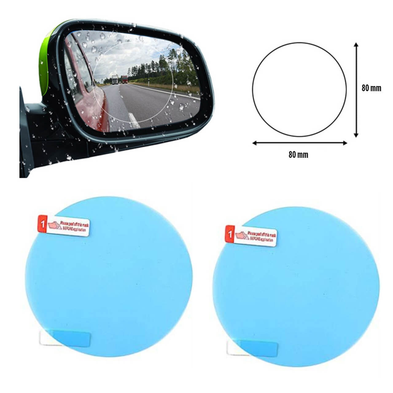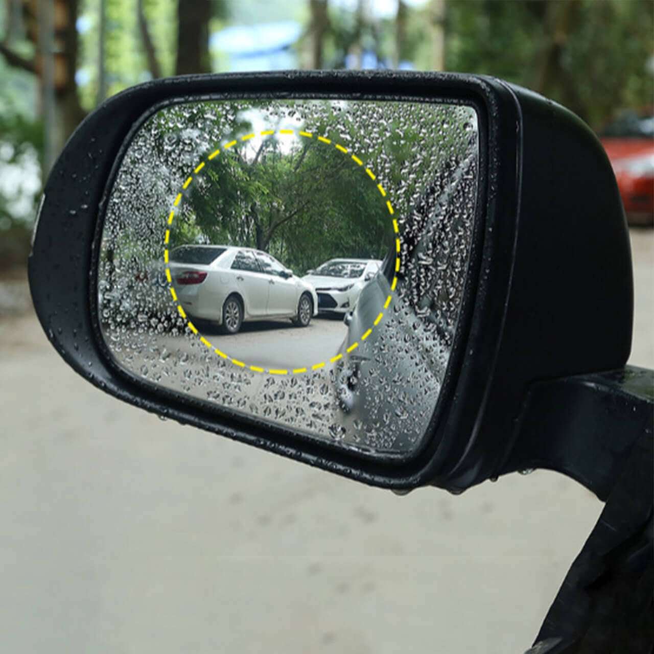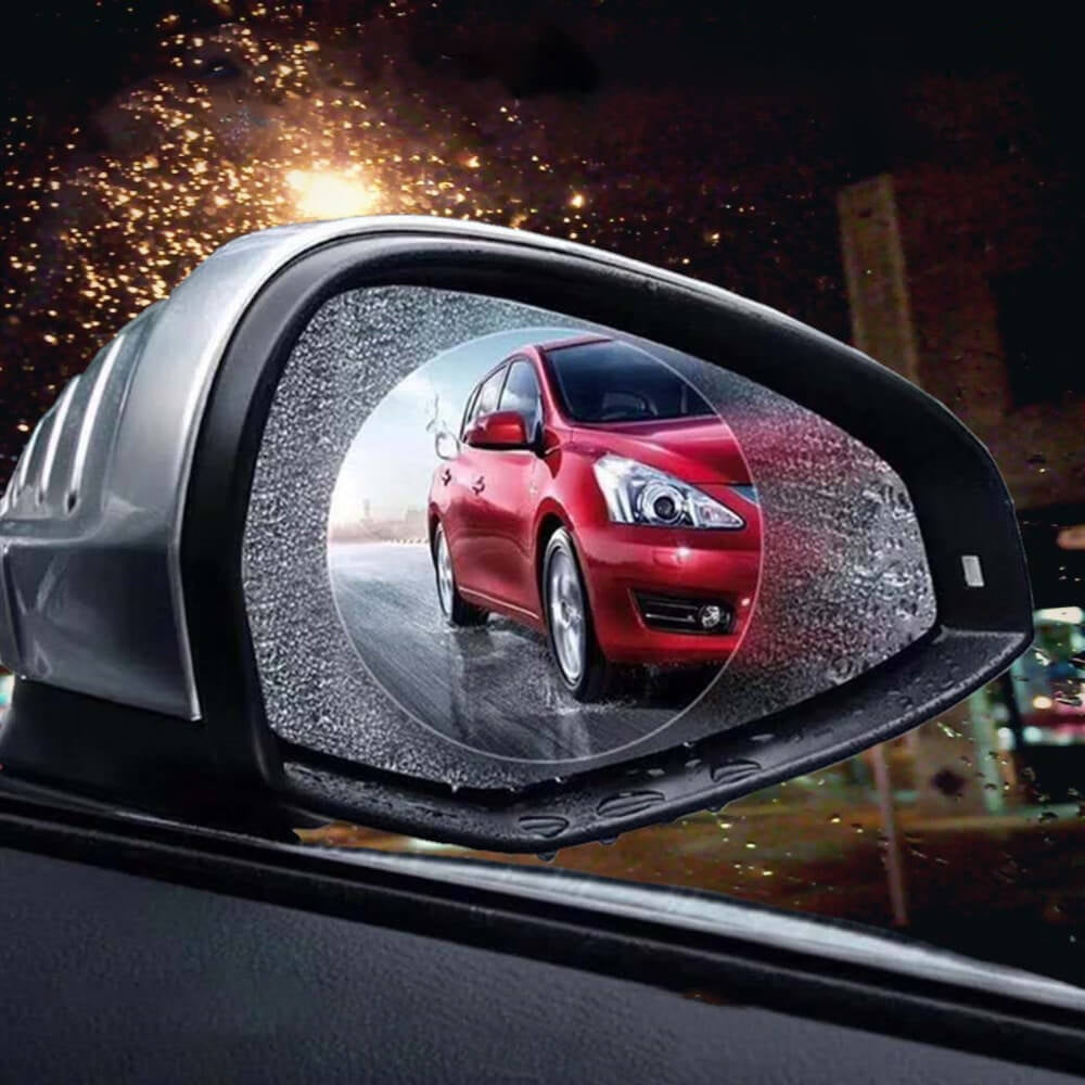 Adhesivo anti-empañante y anti-lluvia para ver mejor por los espejos del carro. 2 unidades. Fácil instalación.