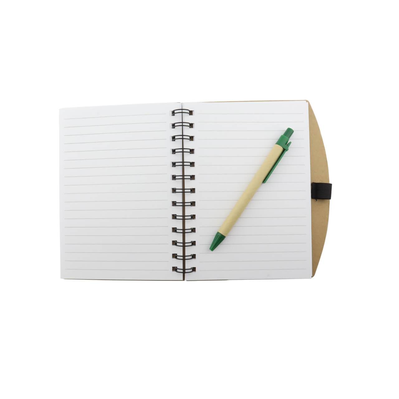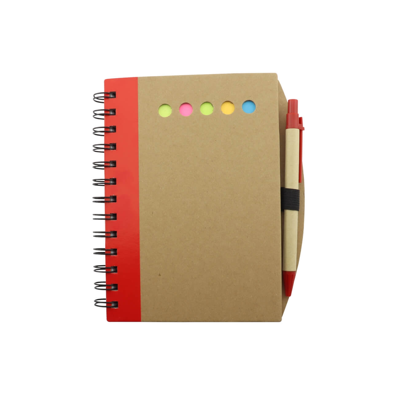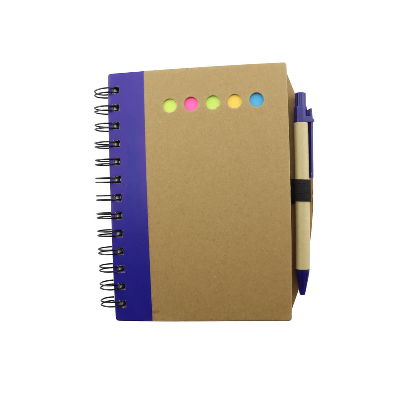 Cuaderno doble O caratula y contracaratula en cartón con esfero incluido, mini Notas adhesivas en 5 colores, 70 Hojas Rayadas.