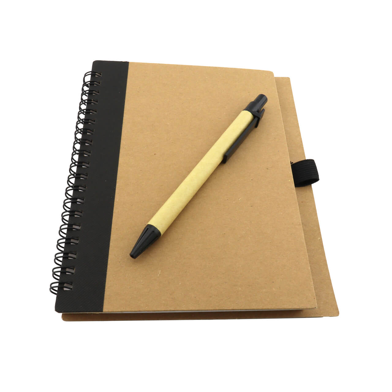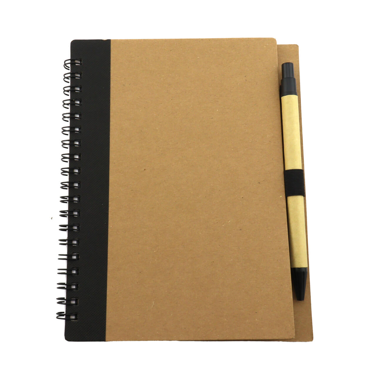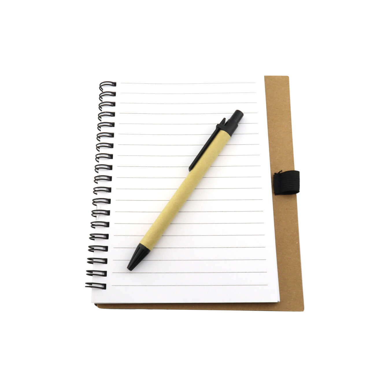Cuaderno con cubierta en cartón, argollado doble O, incluye esfero en cartón. ~ 80 Hojas interiores rayadas.