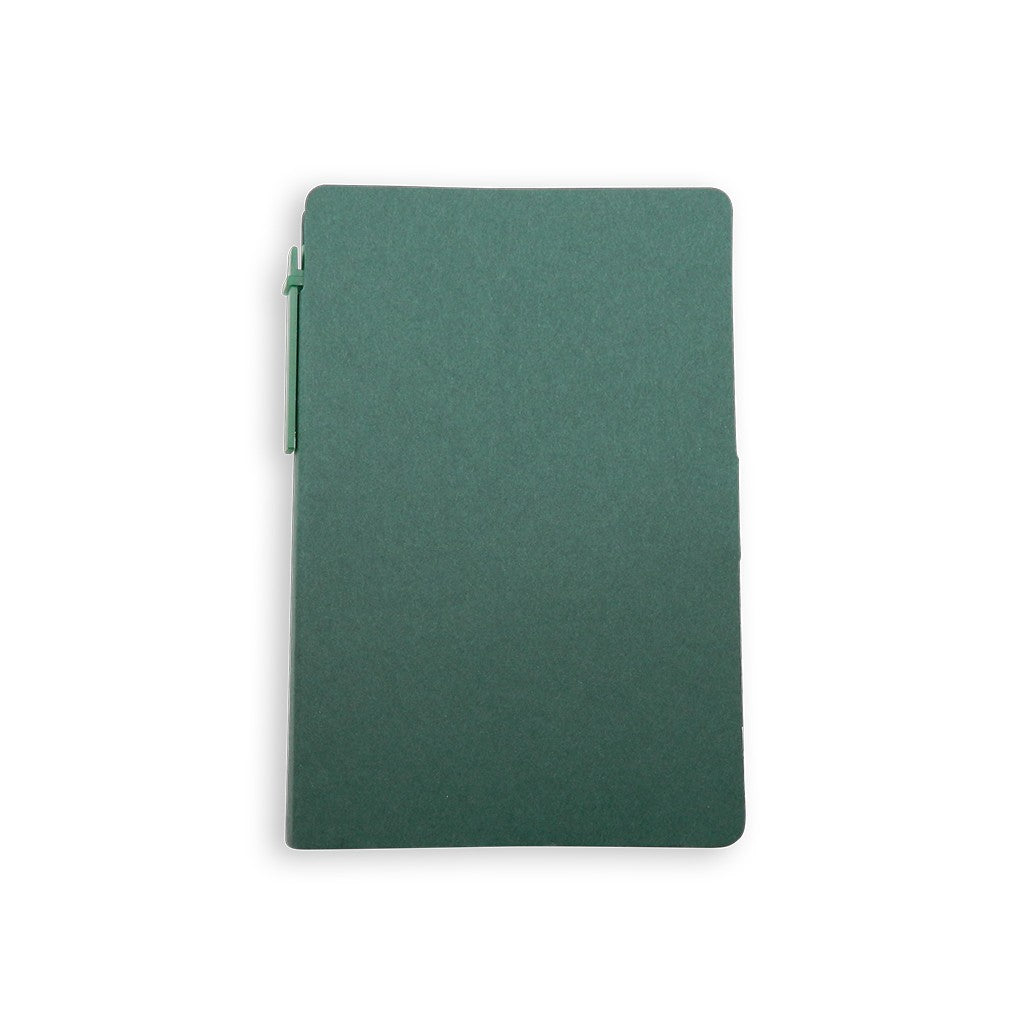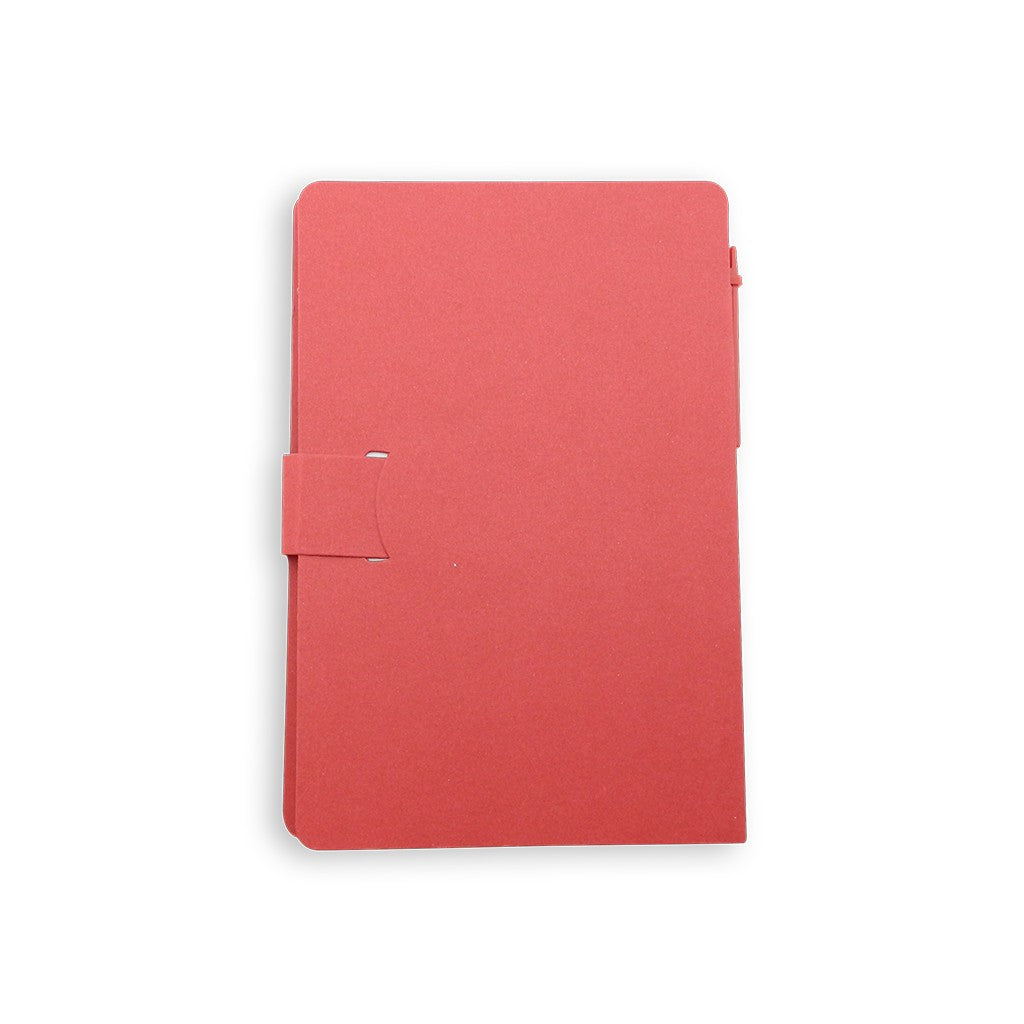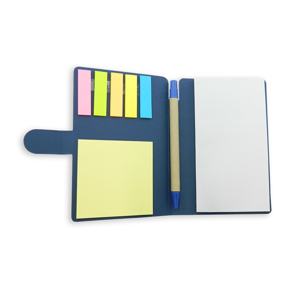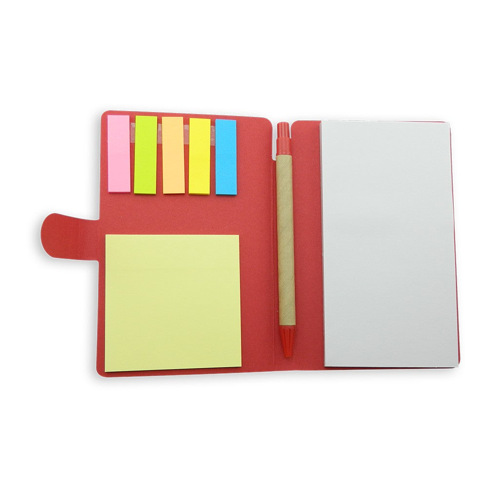 Taco con hojas blancas desprendibles. Incluye esfero ecológico y notas adhesivas. 75 hojas blancas y 114 notas adhesivas aprox.
