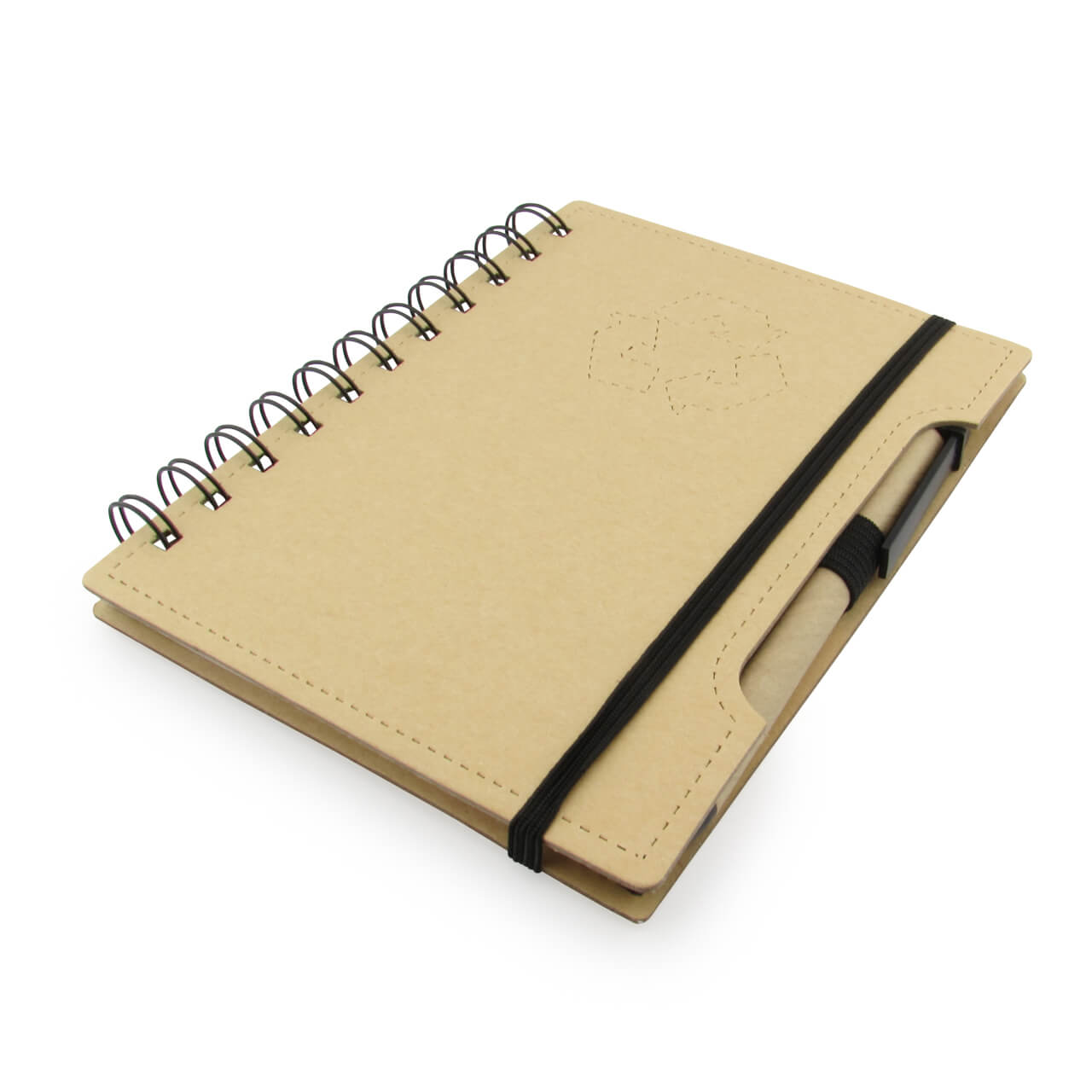 Libreta en cartón ecológico, esfero ecológico incluido, 70 hojas rayadas.