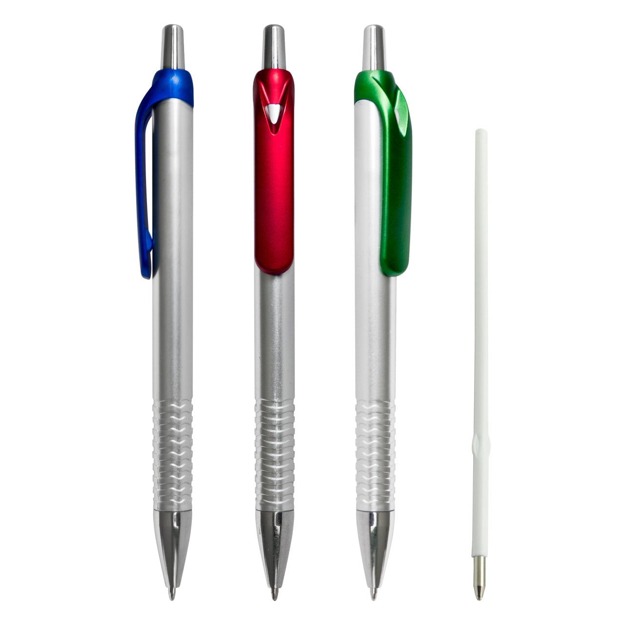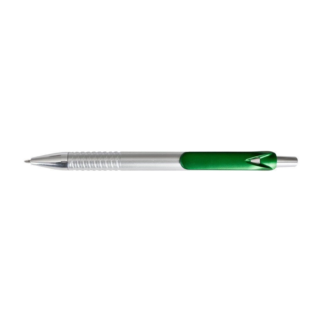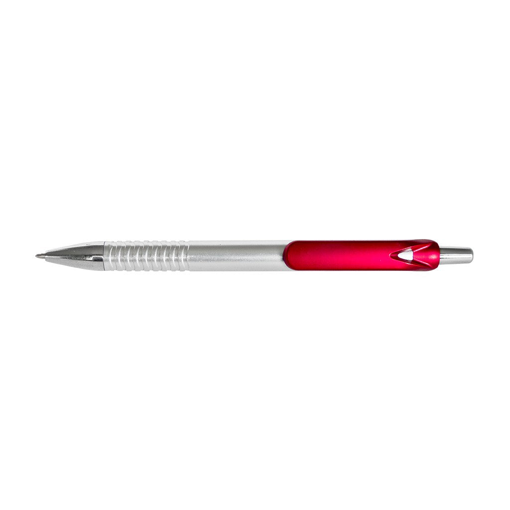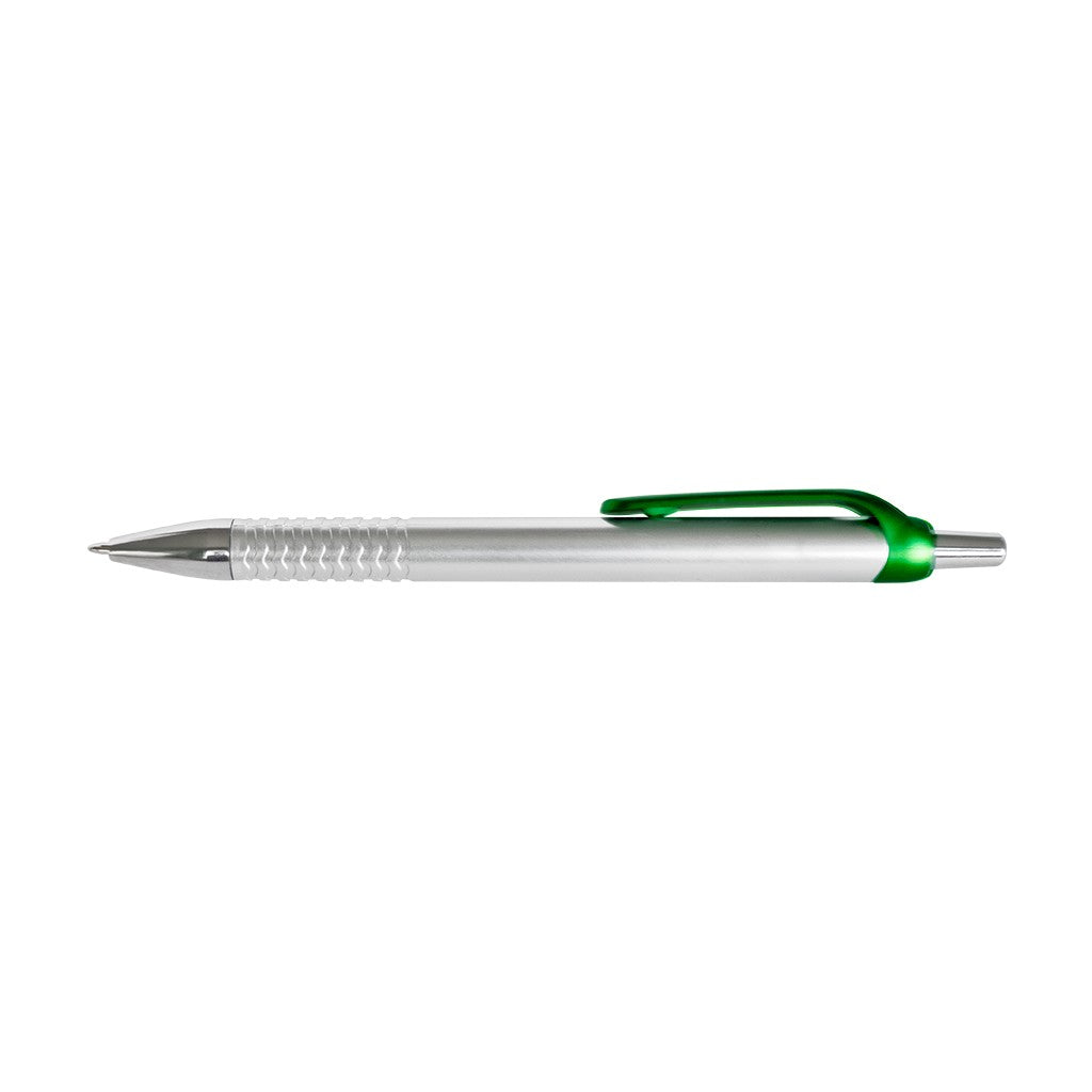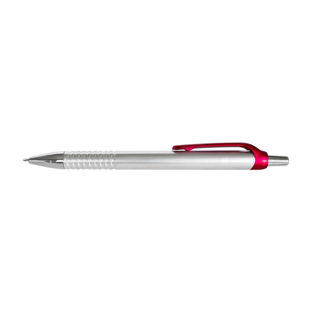 Esfero plástico pintura plata, clip y punta cromada.