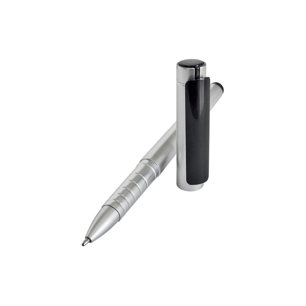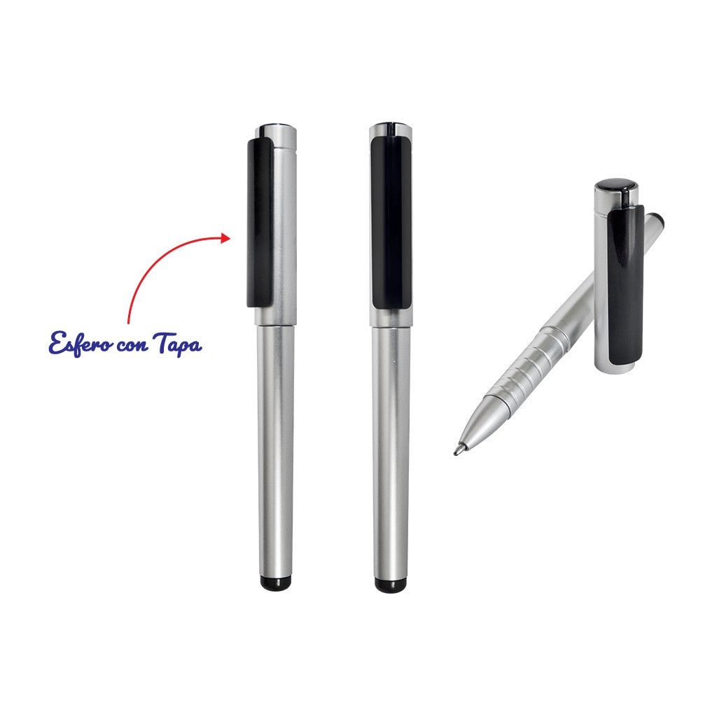 Esfero plástico color metalizado, con tapa.