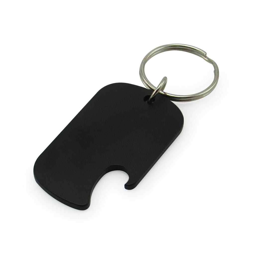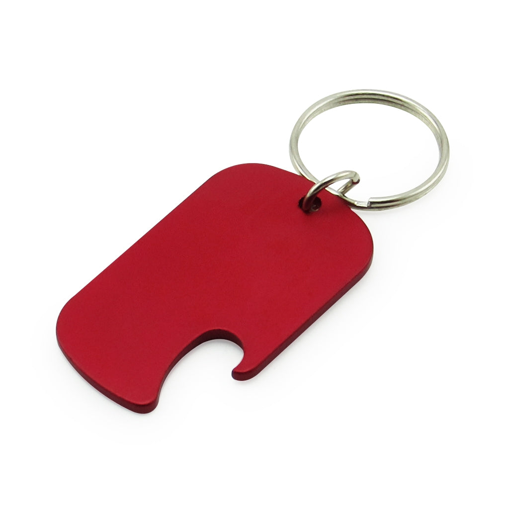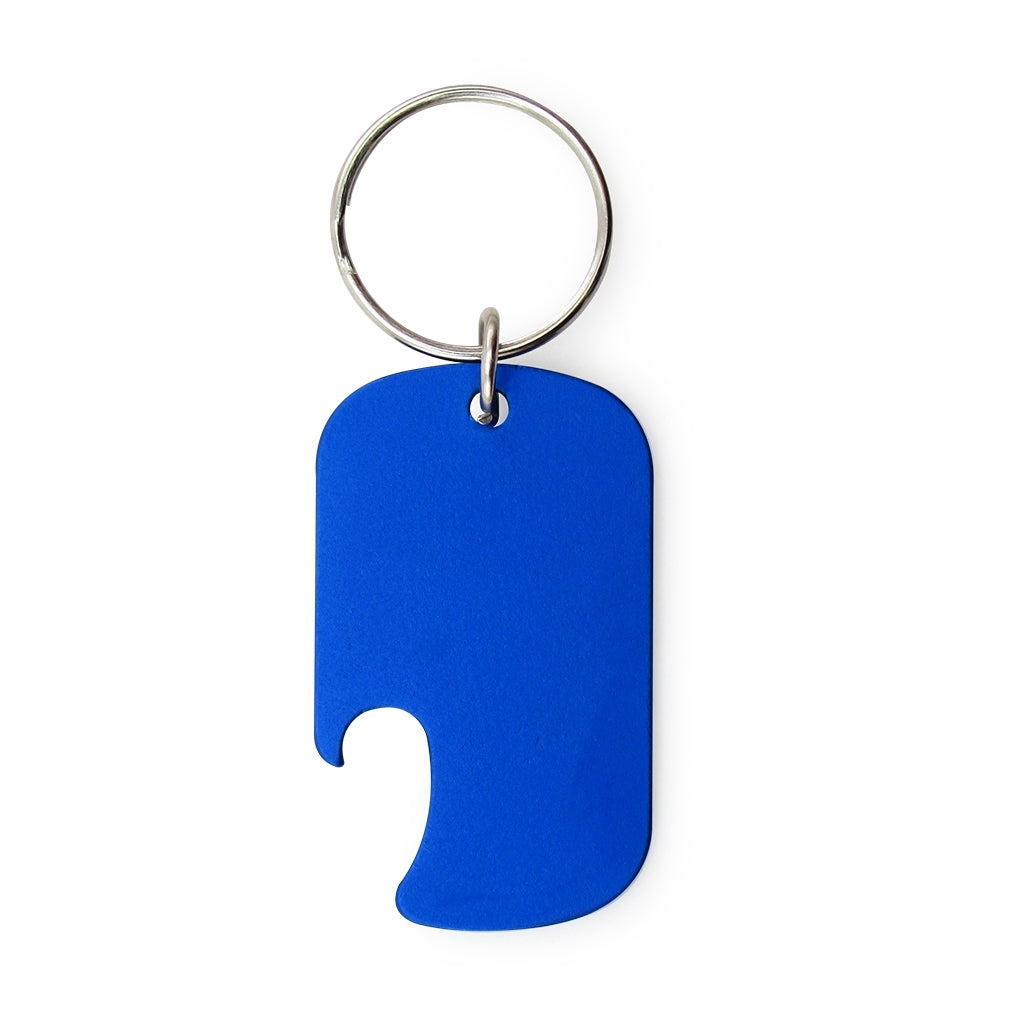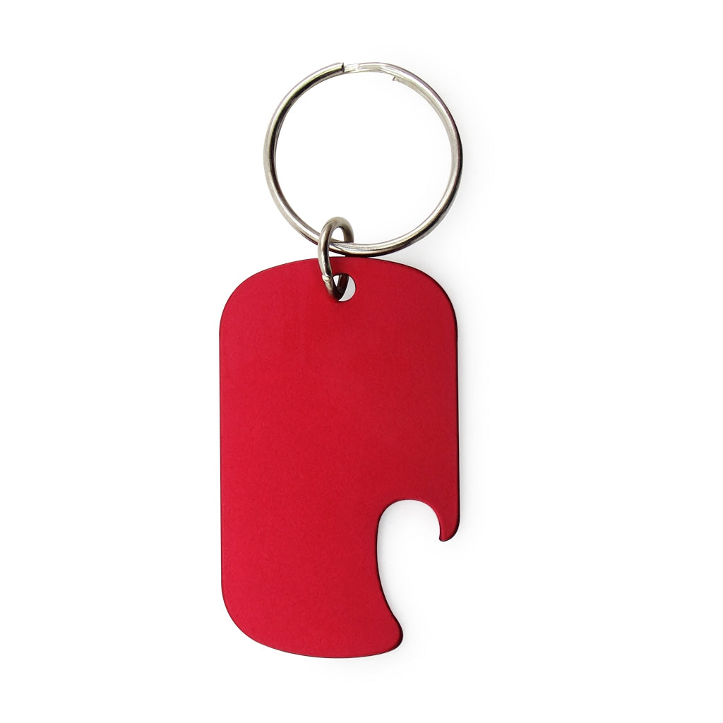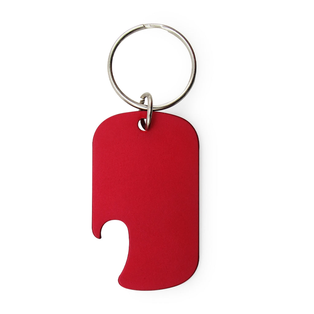 Llavero en aluminio con pintura metalizada, muesca para destapar botellas.