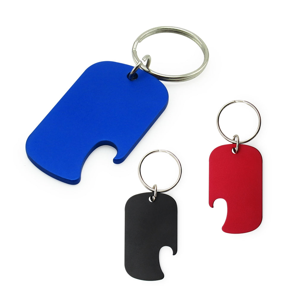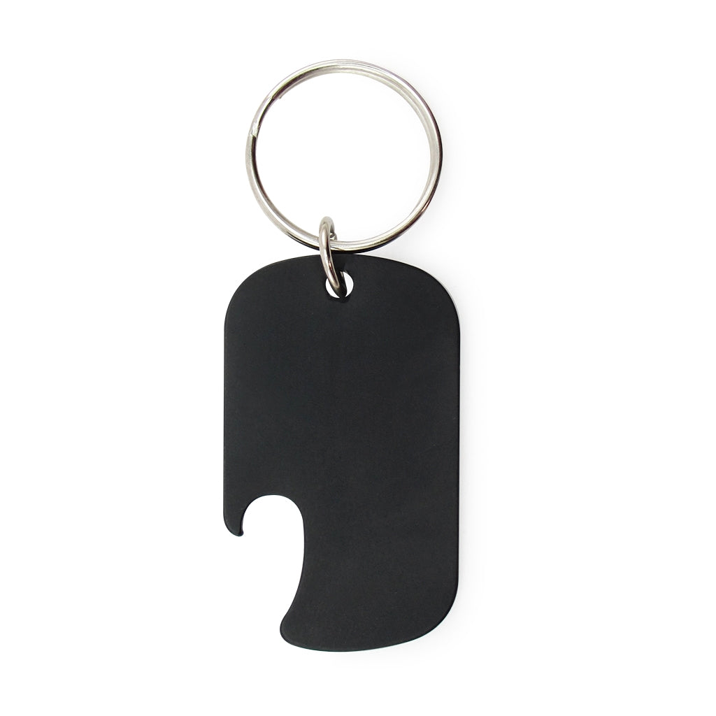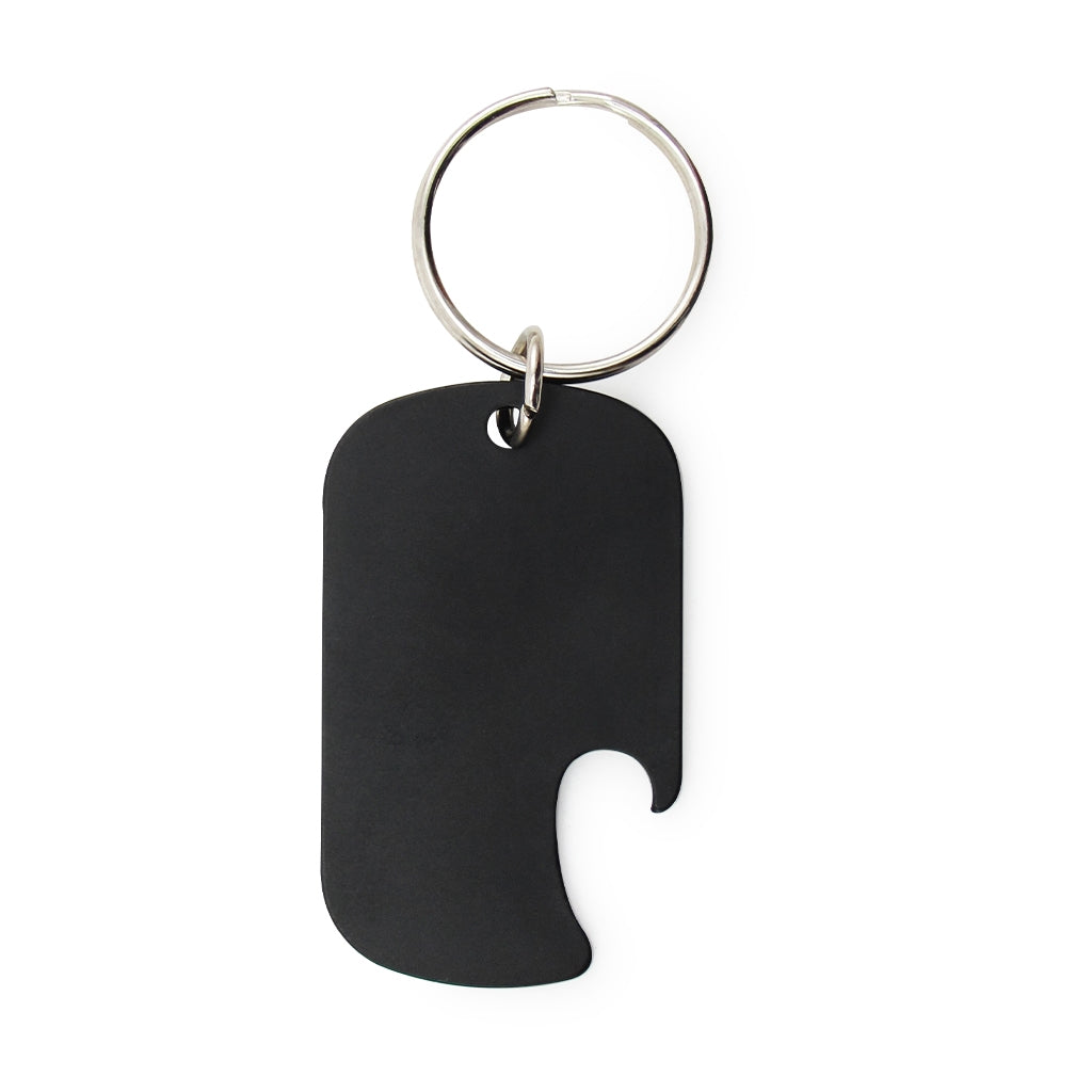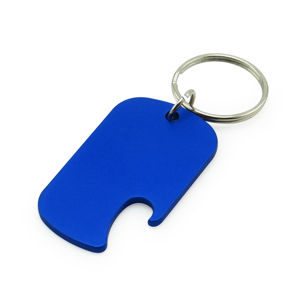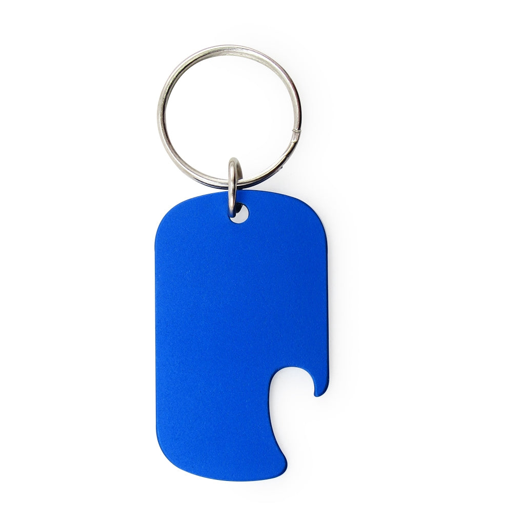 Llavero en aluminio con pintura metalizada, muesca para destapar botellas.