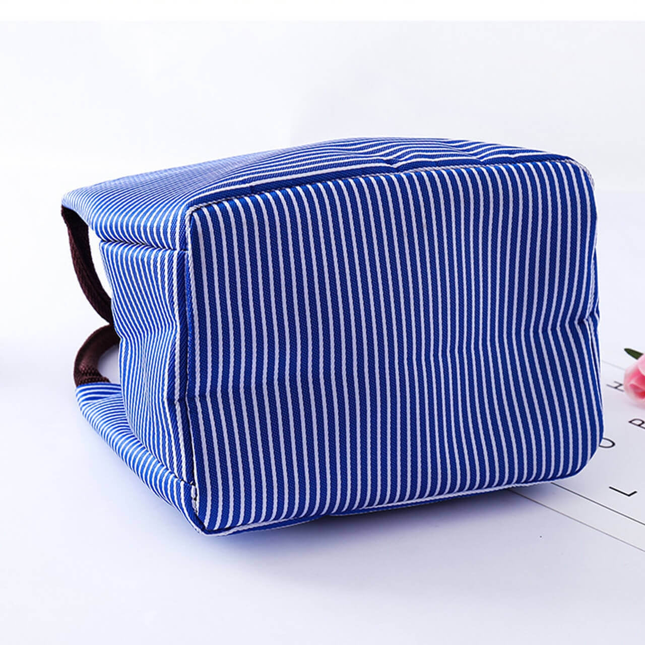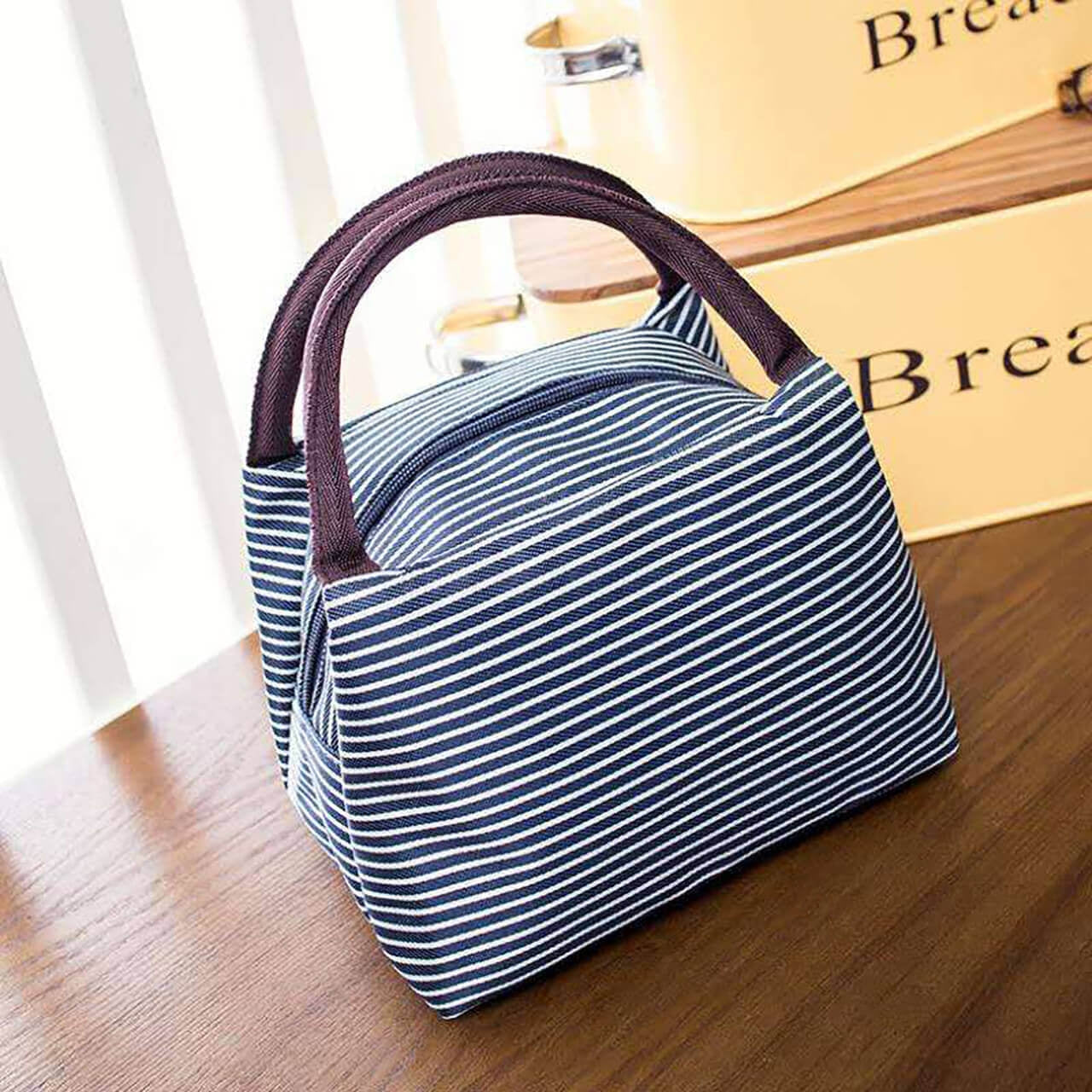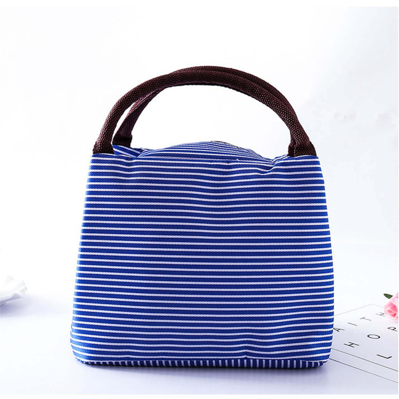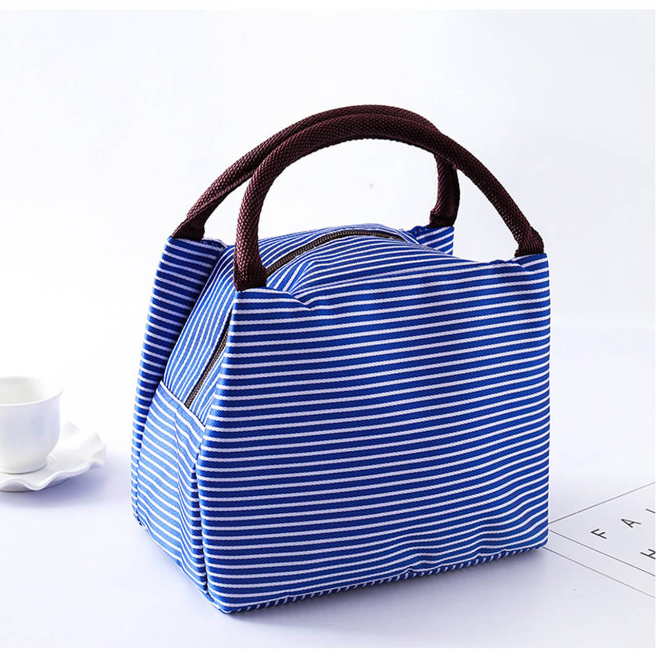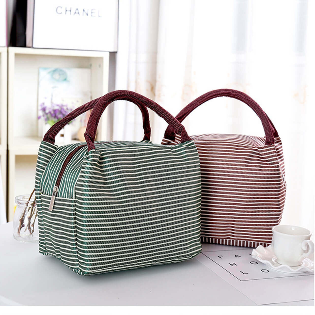 Lonchera para alimentos con cremallera, en poliéster, con recubrimiento térmico interno.