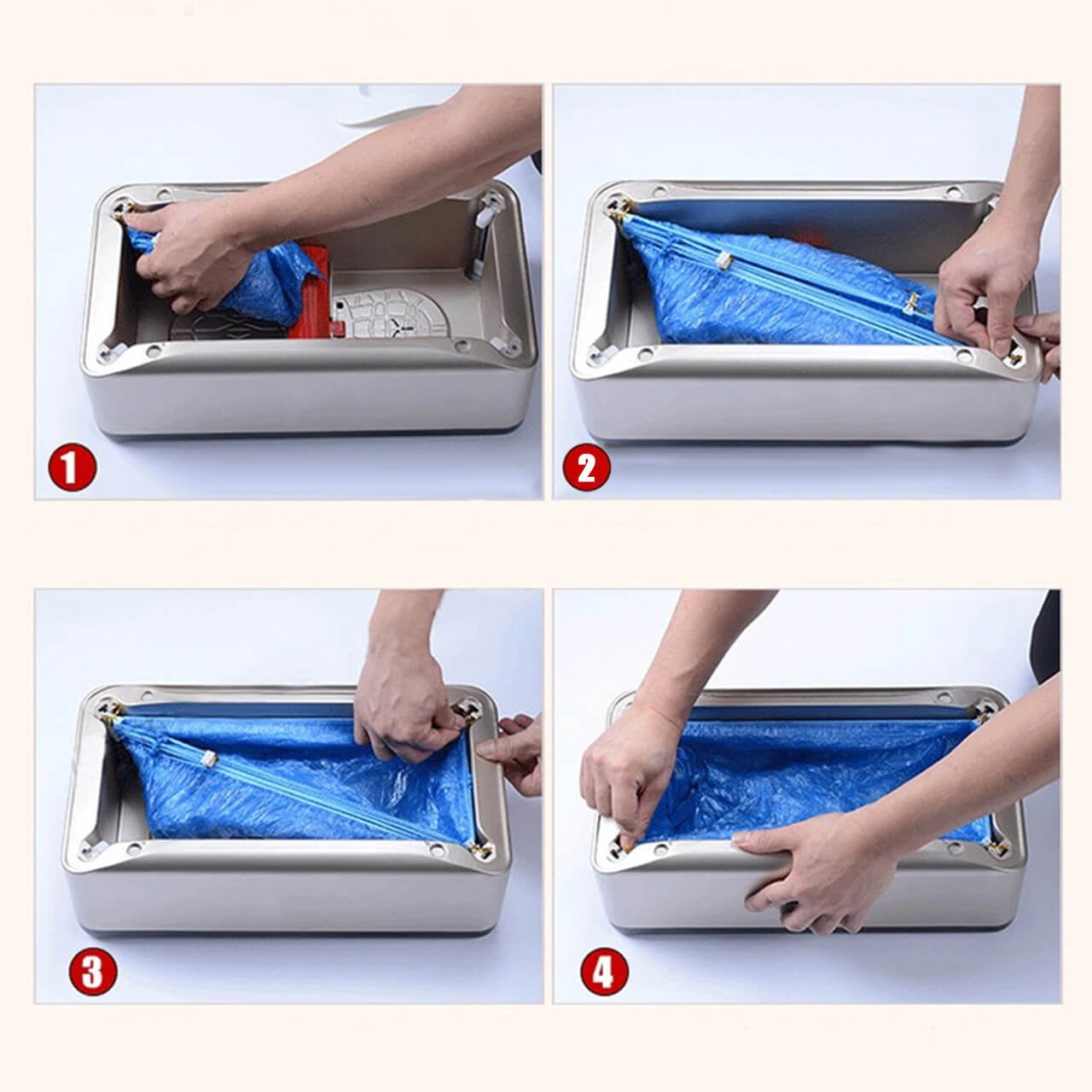 Maquina para cubrir zapatos automática al poner el pie pone una bolsa en el zapato. Para uso comercial, residencial o entornos médicos.