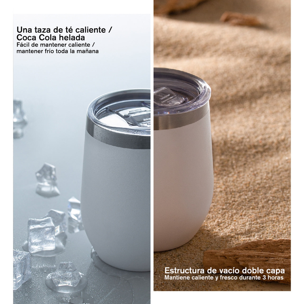 Doble pared en acero inoxidable con aislamiento térmico que mantiene la bebida fría entre 8 a 10 horas, o caliente 3 a 4 horas.