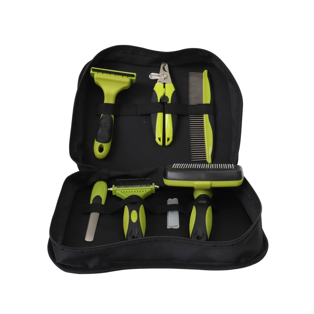 Kit de aseo para perros juego de cepillos 6 en 1, incluye maletín para guardar las herramientas de aseo con almacenamiento conveniente y fácil de llevar.
