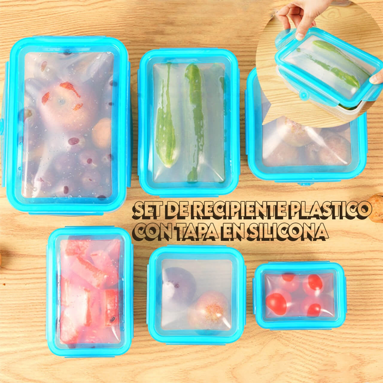 Juego de Recipientes plásticos con tapa elástica en silicona.
