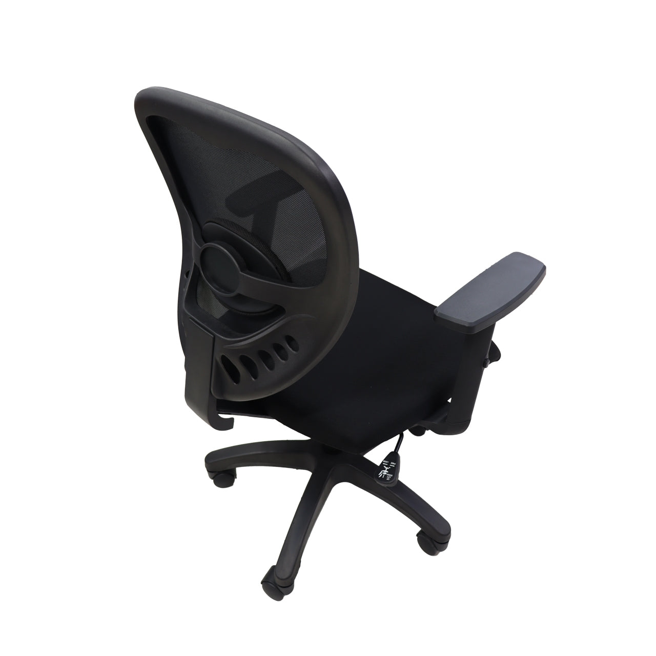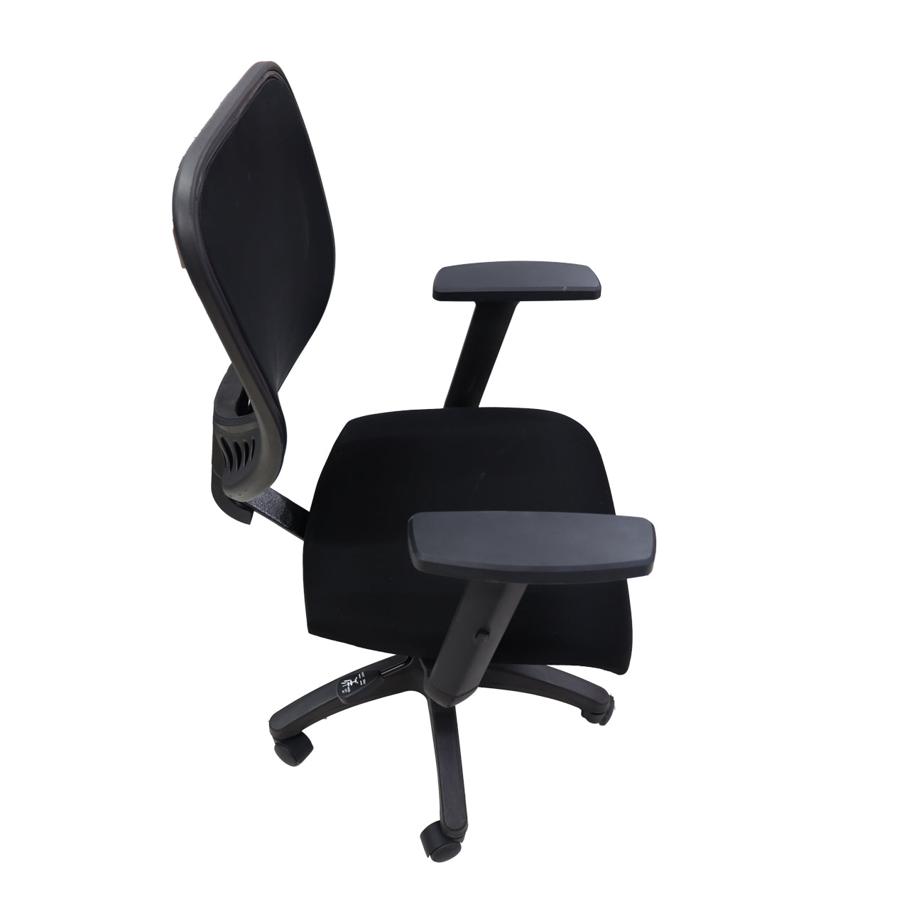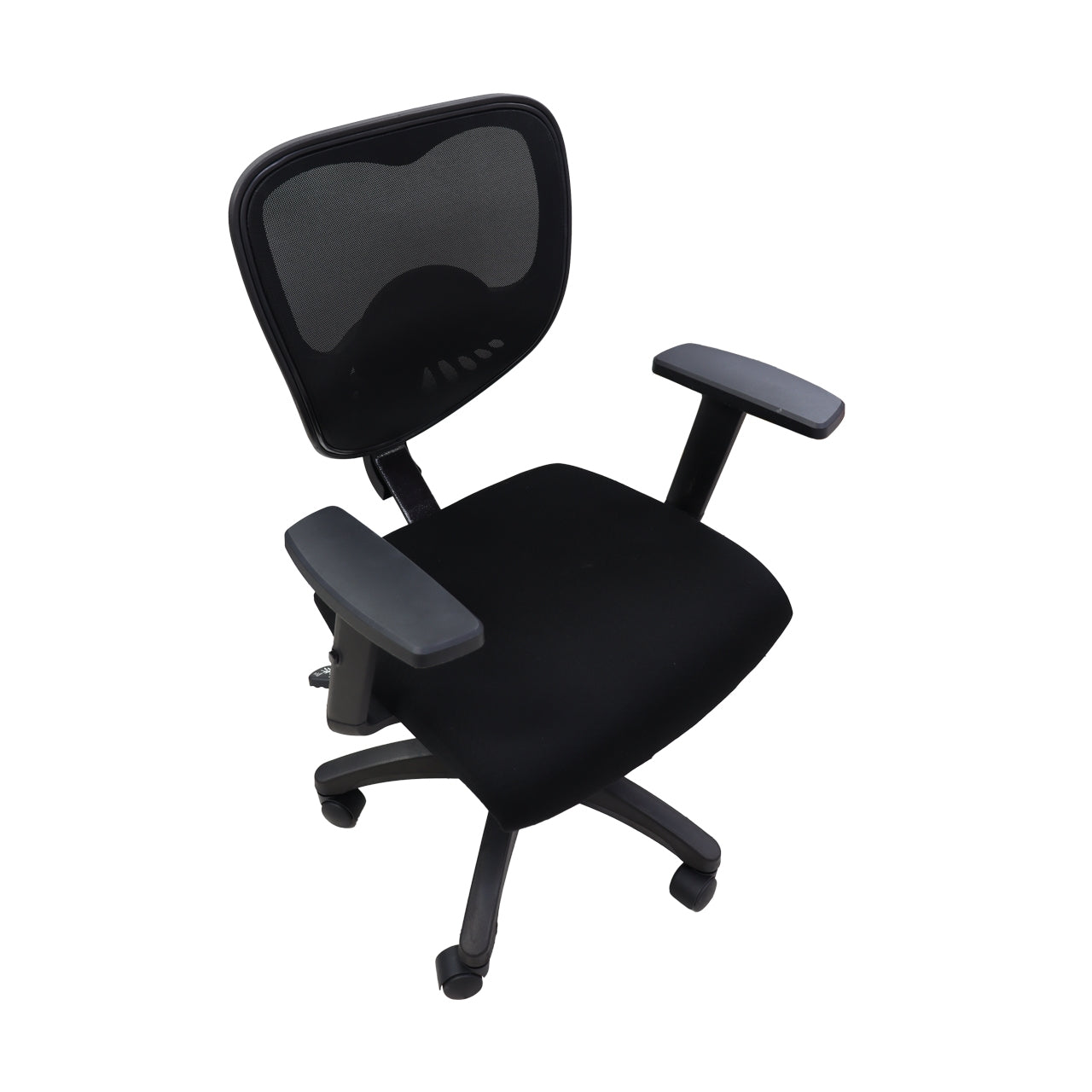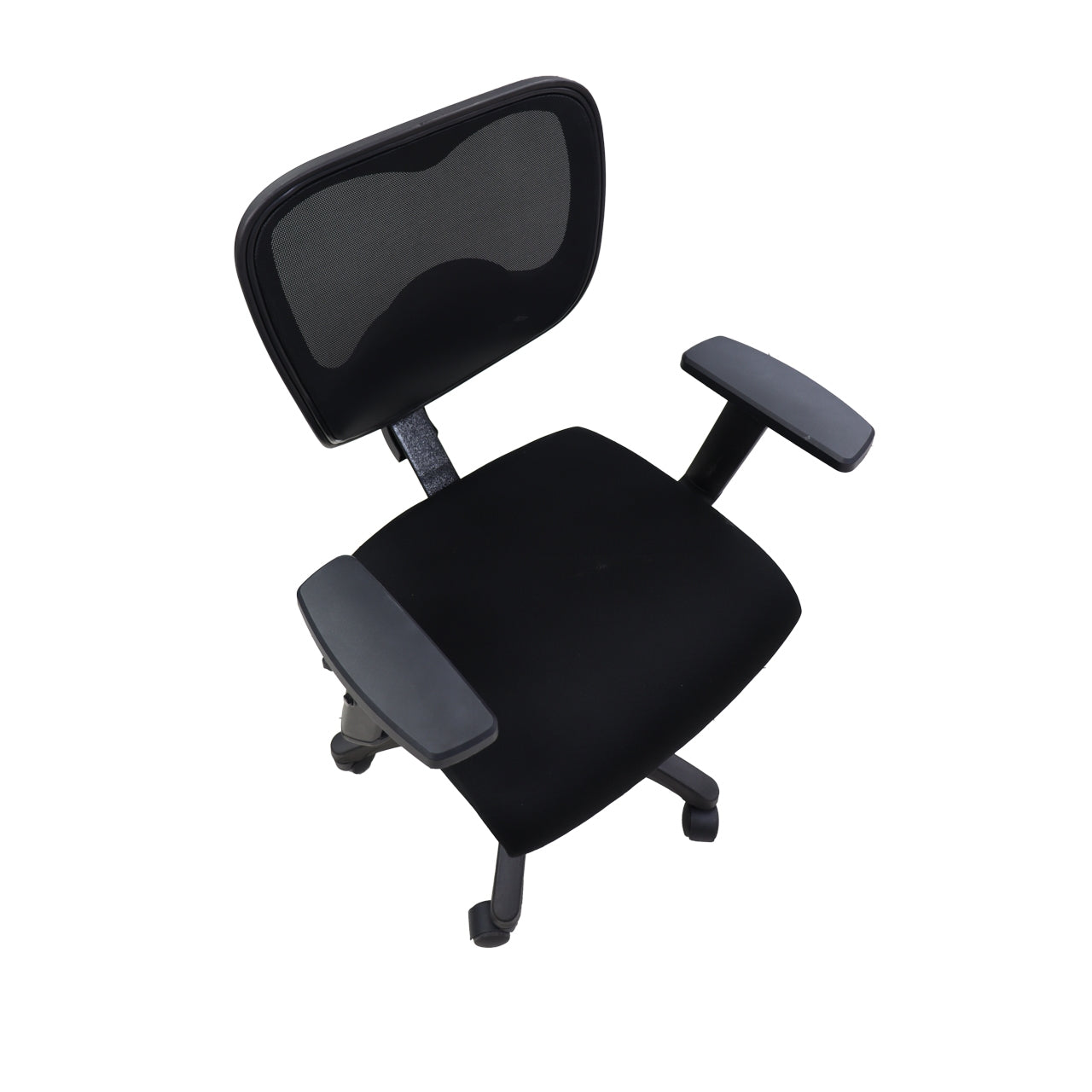 Silla de oficina giratoria con soporte de brazos y altura ajustable.