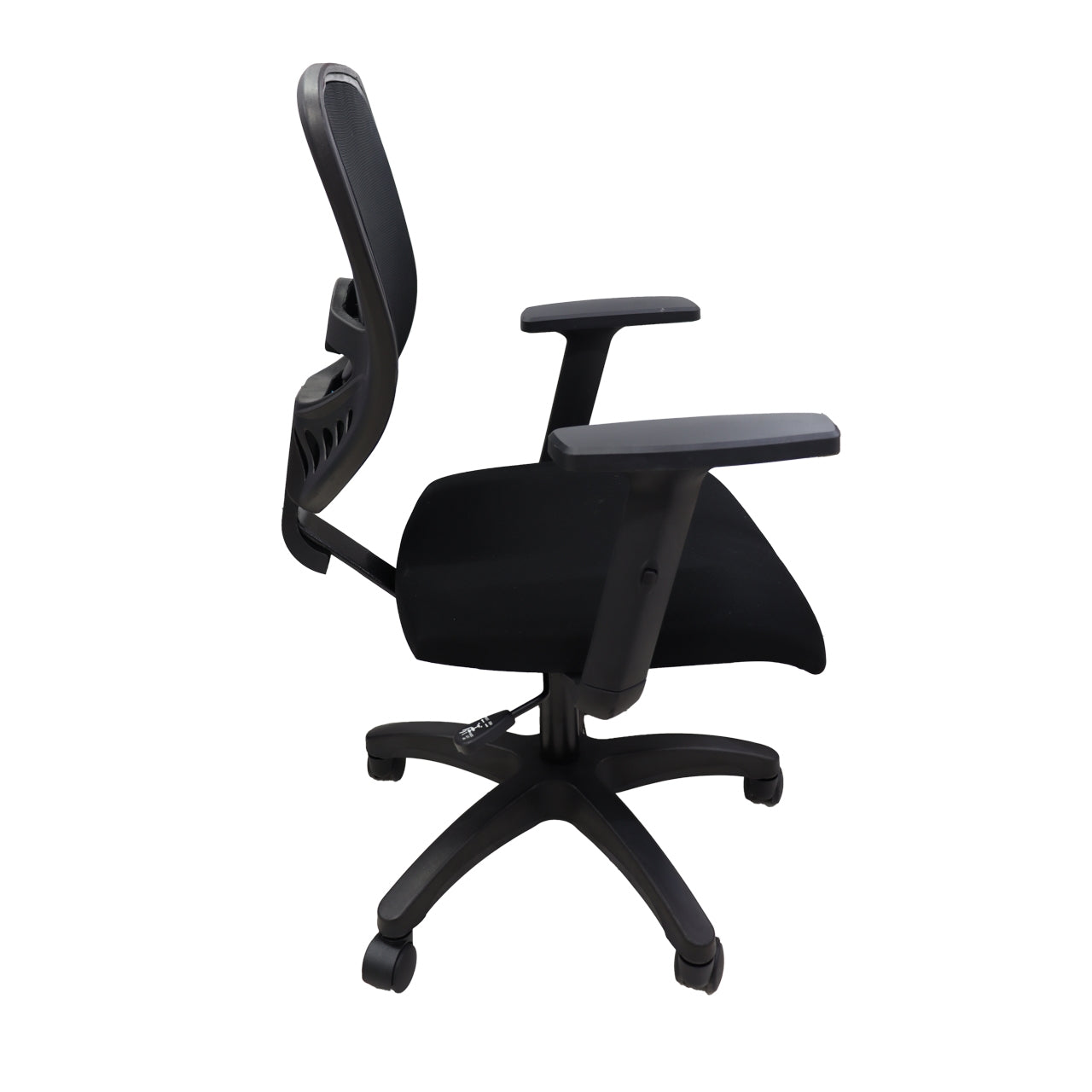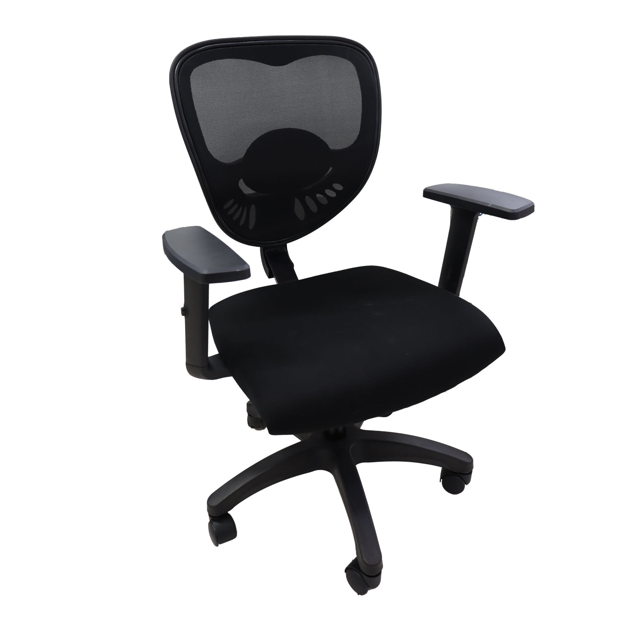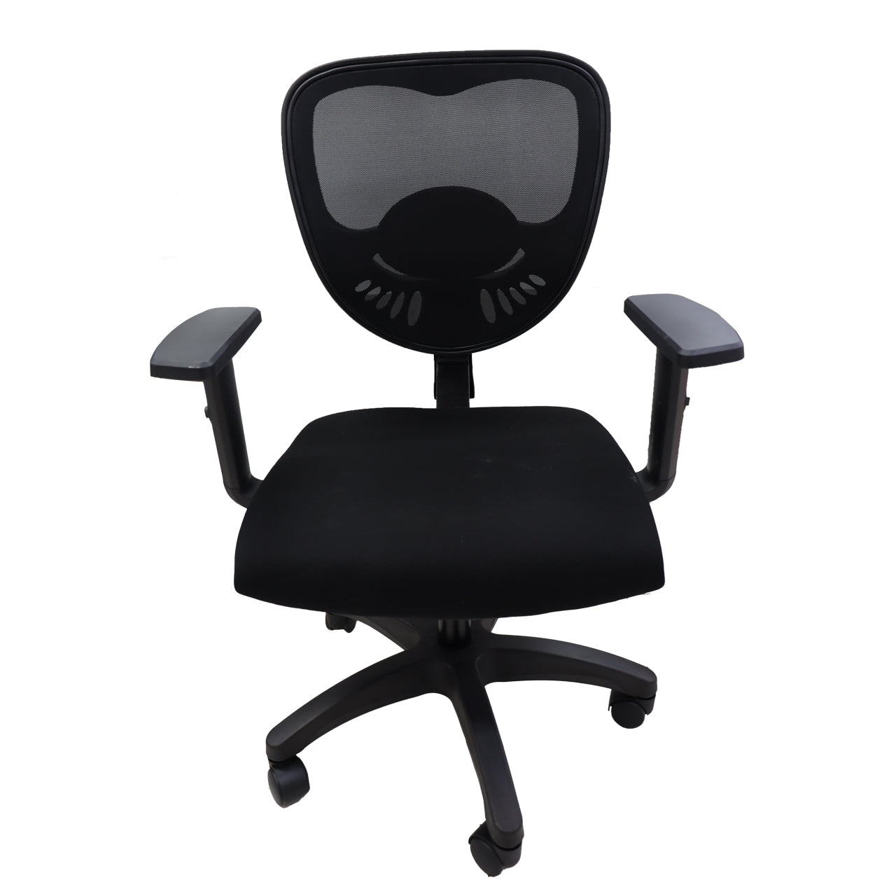 Silla de oficina giratoria con soporte de brazos y altura ajustable.
