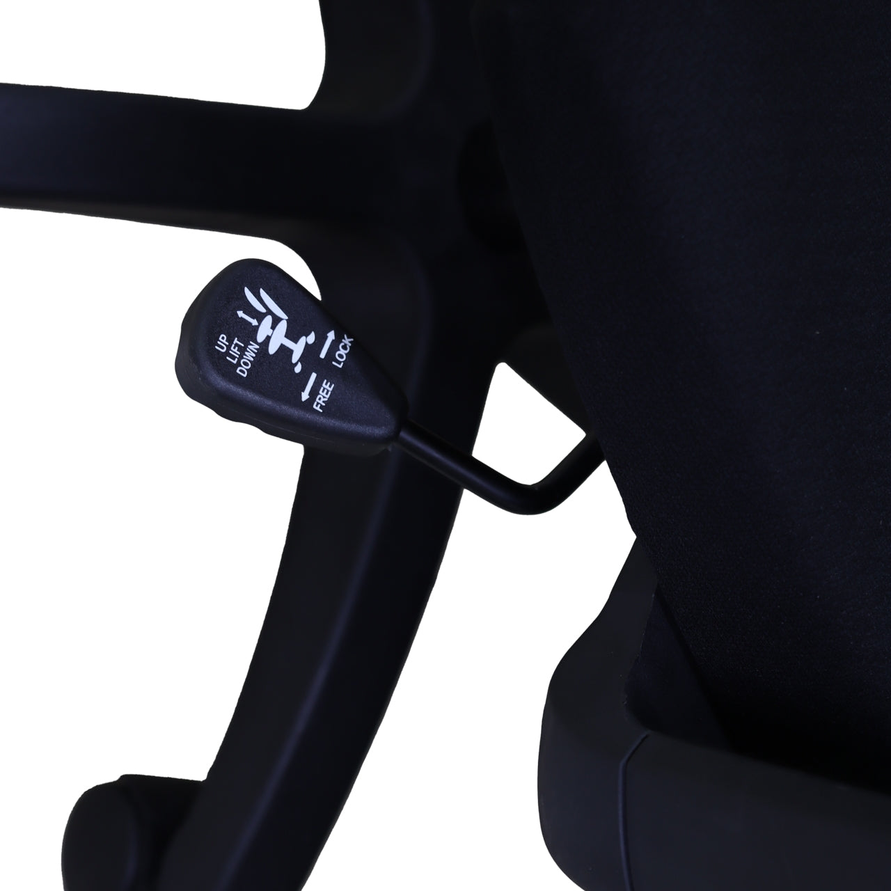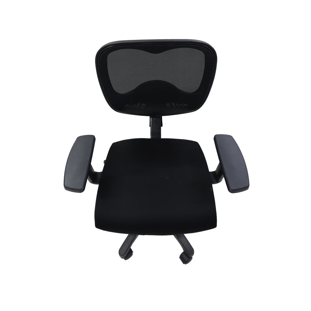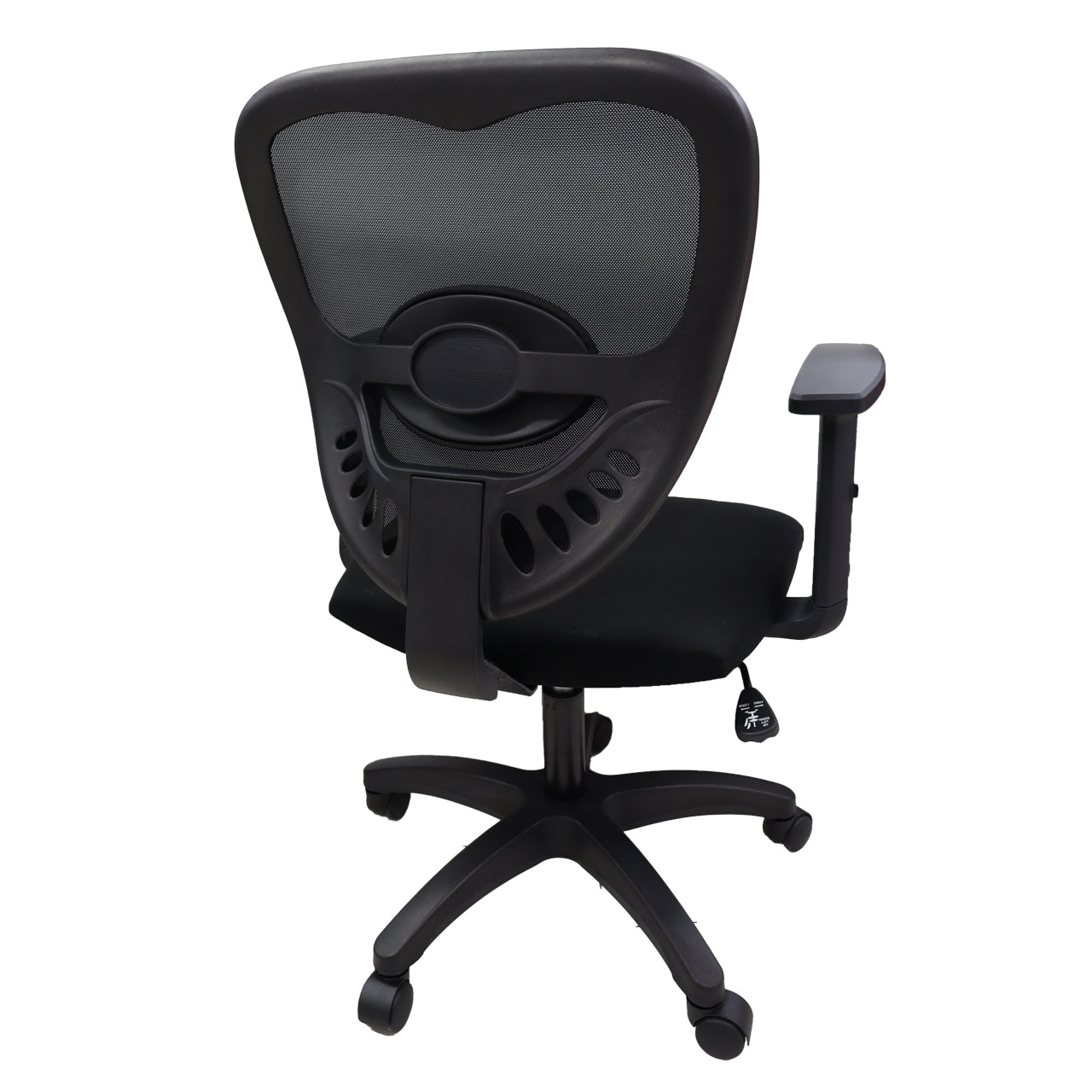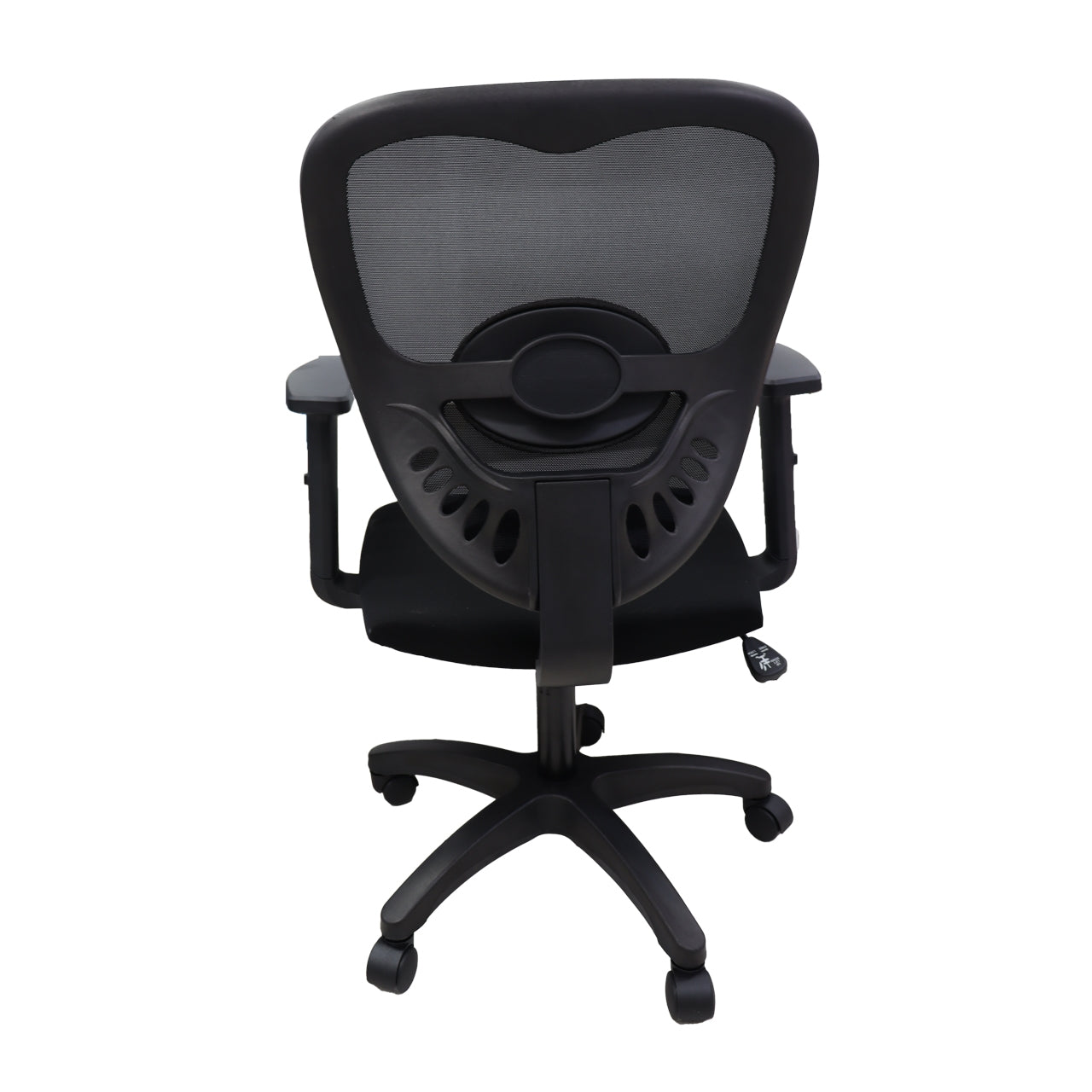 Silla de oficina giratoria con soporte de brazos y altura ajustable.