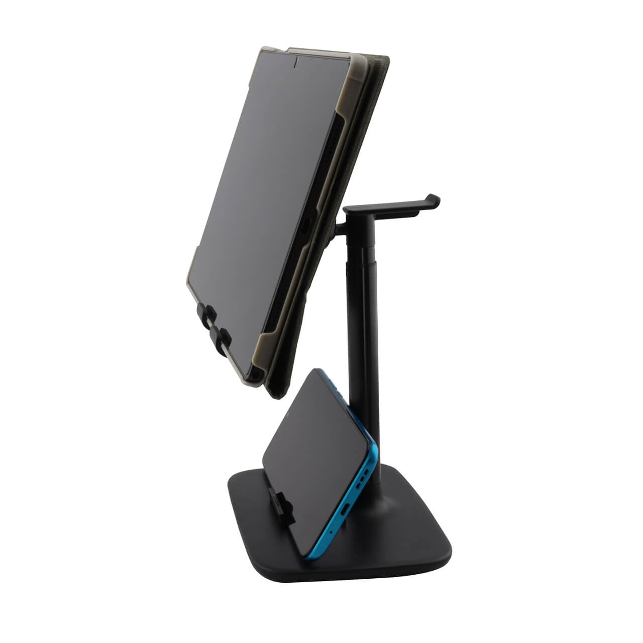 Soporte con Base para celular y tablet, rotación de 60 grados, ampliamente compatible.