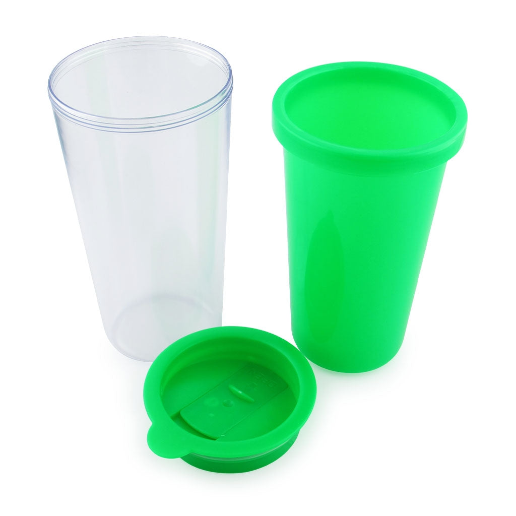 Vaso Doble pared plástico desarmable para insertar publicidad o fotos en papel.
