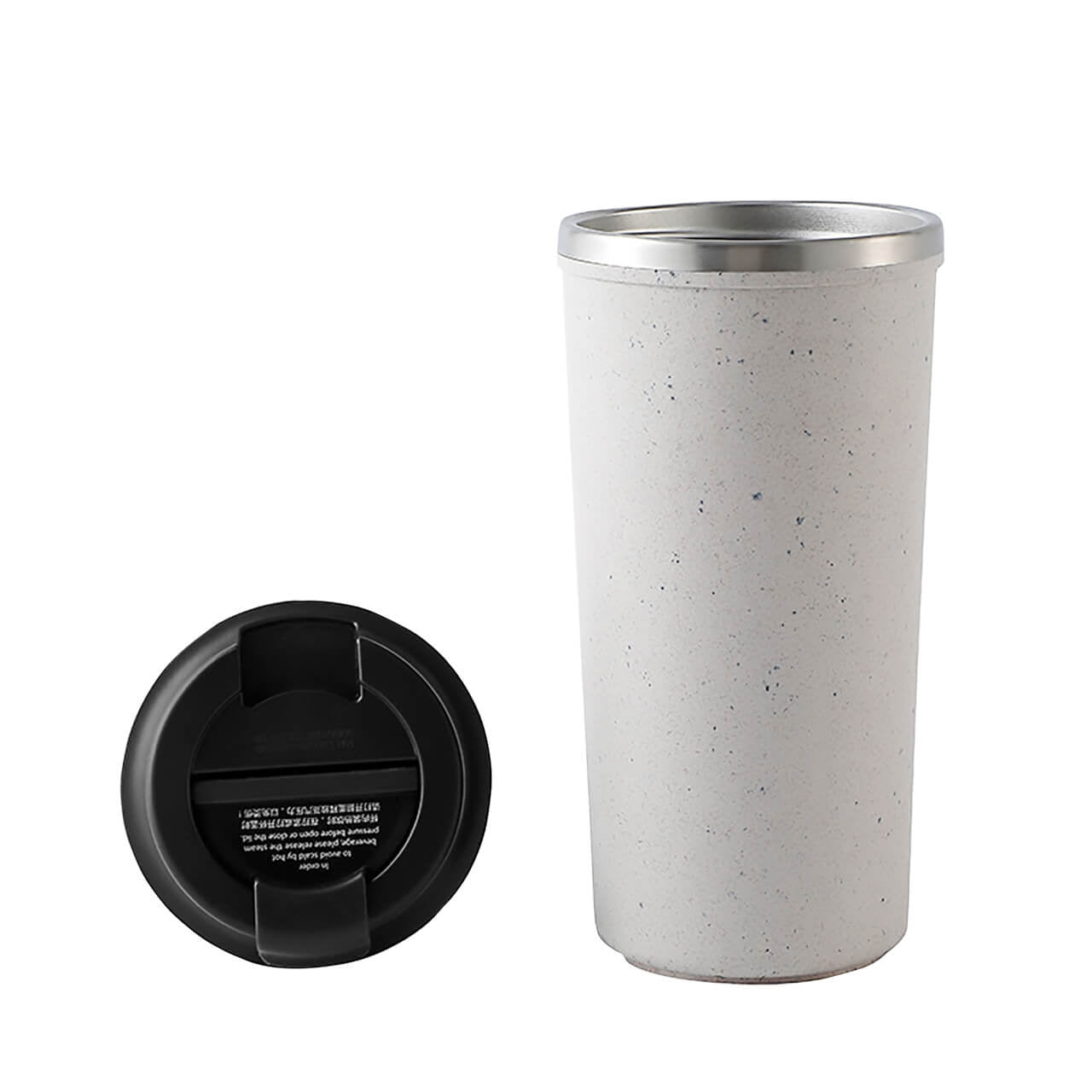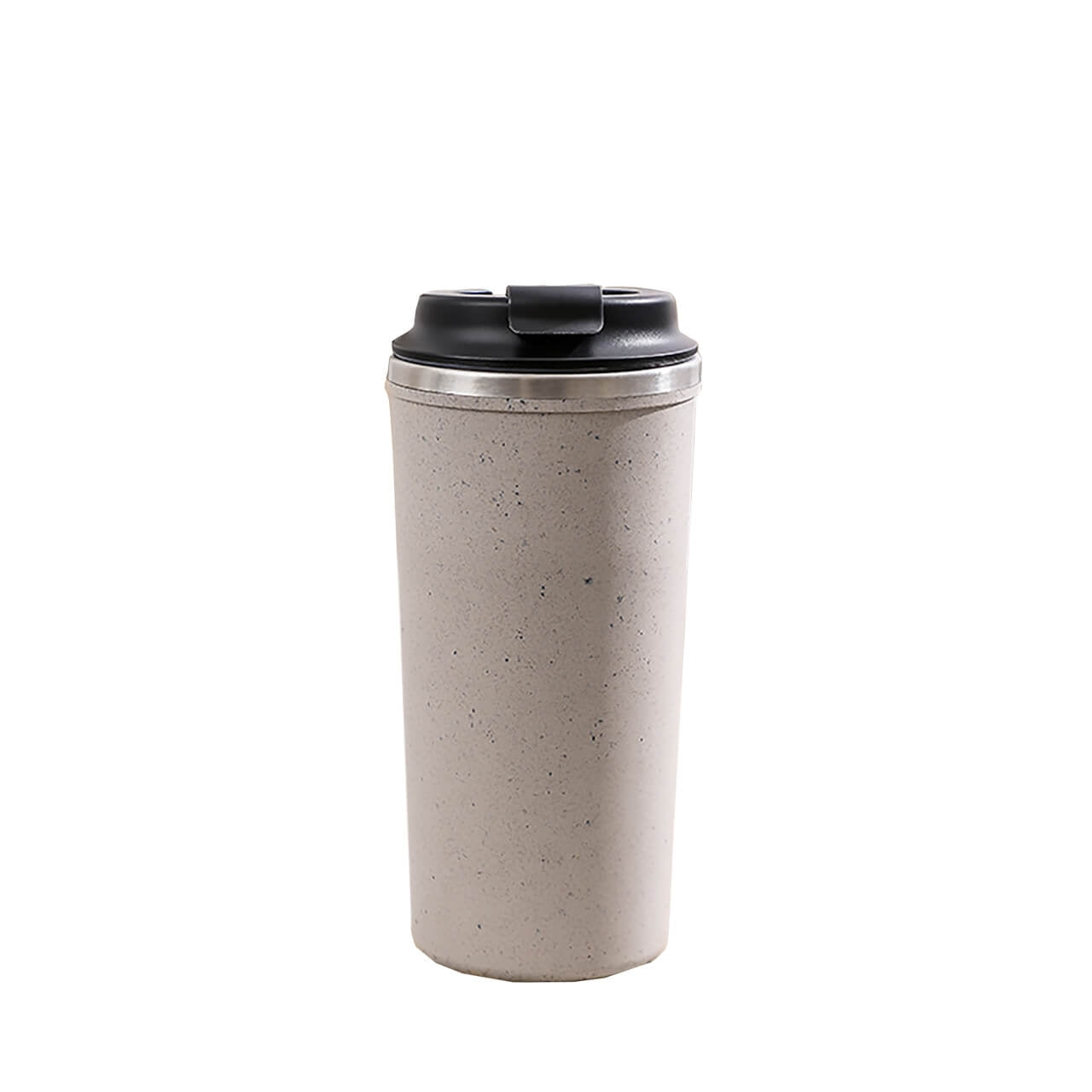 Vaso doble pared interior en acero alimenticio, exterior en paja de trigo con chupa en la base para evitar derrames.