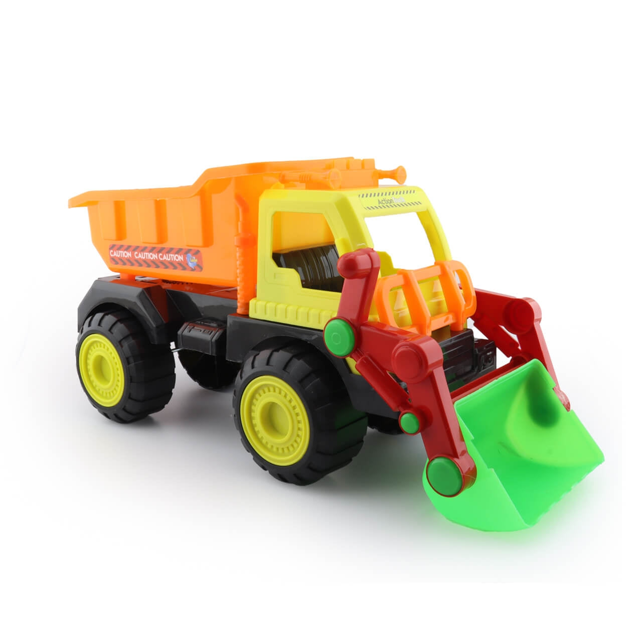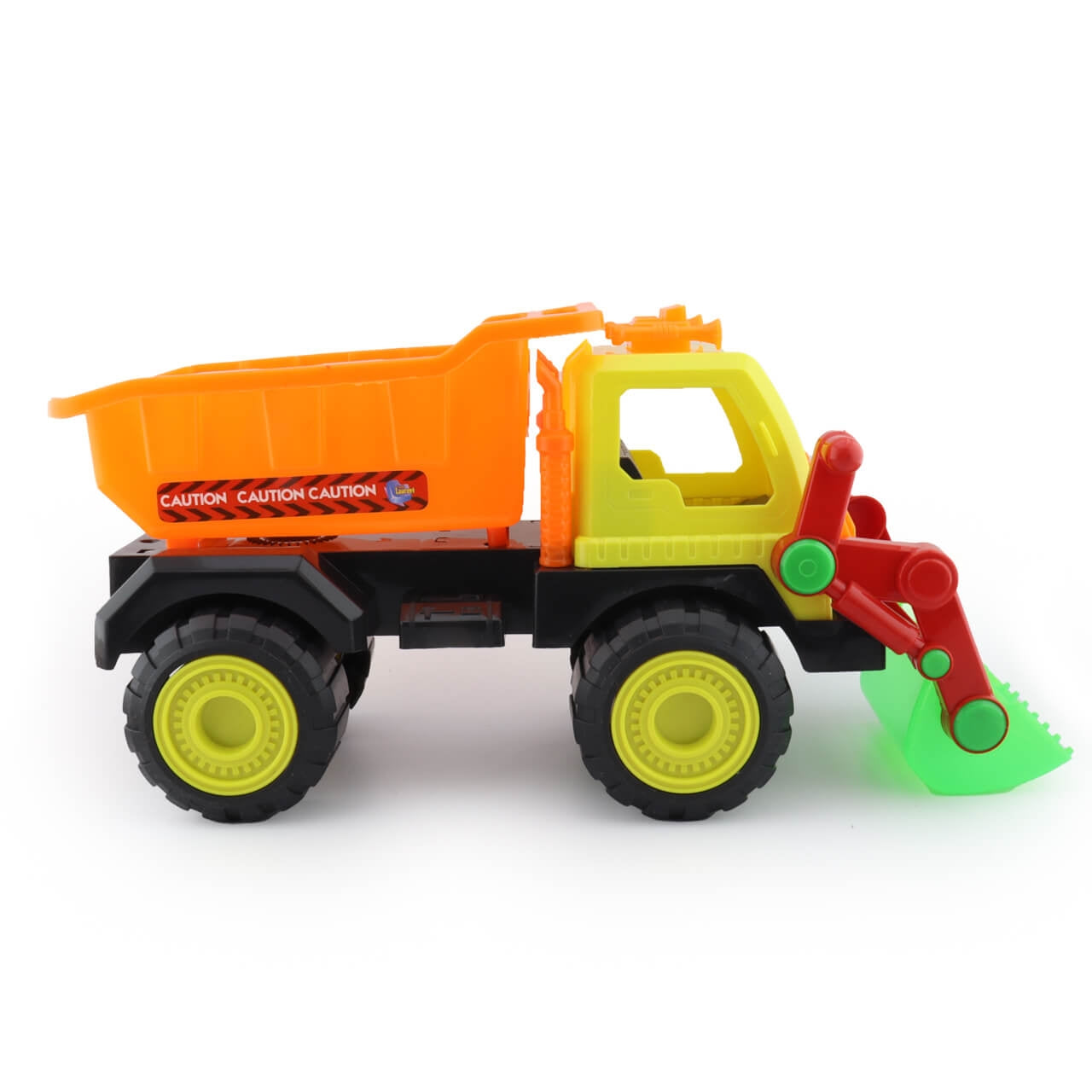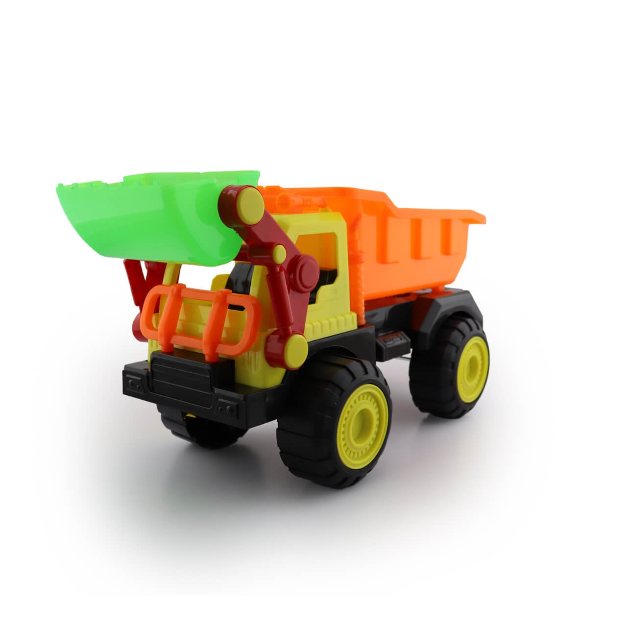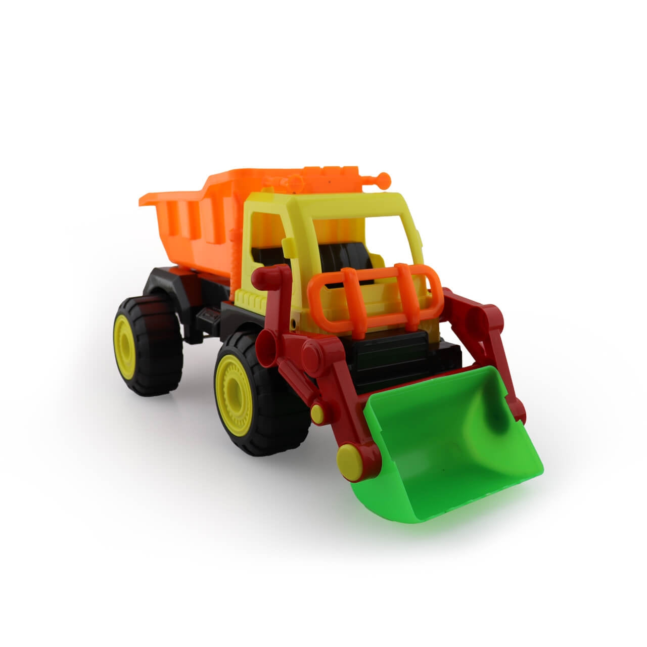 Juguete Volqueta Retroexcavadora elaborado en plástico.